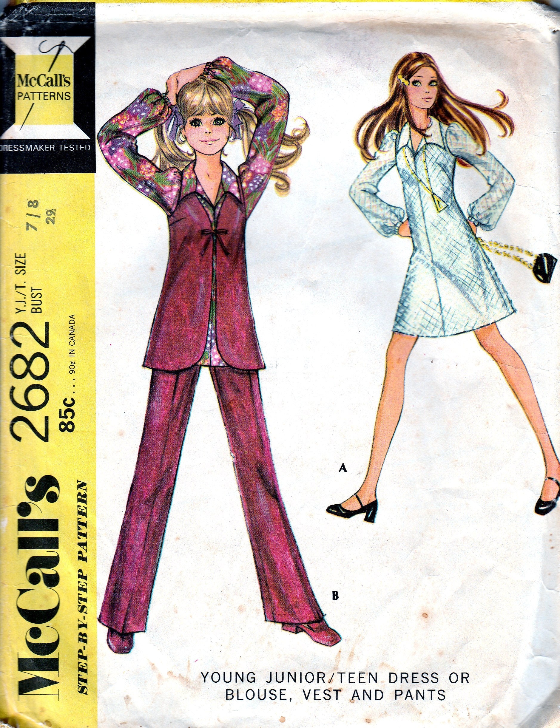 Momspatterns Vintage Sewing Patterns Simplicity 5821 Vintage 70 S Sewing Pattern Super Cute Teen Girls Brady Bunch Ruffle Trim Prairie Look Blouse Dress Flared Bell Bottoms Pants Size 12